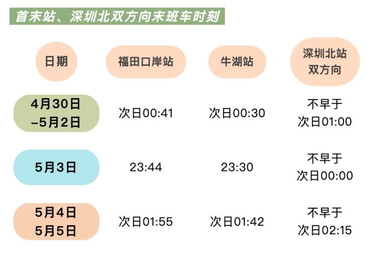 “五一”小长假 为保障市民乘客假期便捷出行 地铁4号线、13号线 提前部署行车组织方案 延长运营服务时间 全力护航你的“五一”出行路! 4号线运营时间调整 •4月30日-5月2日延长服务