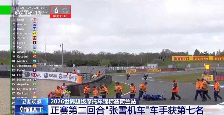 2026世界超级摩托车锦标赛荷兰站,北京时间昨晚8点,进行中量组第二场正赛争夺。最终,来自中国摩托车制造商“张雪机车”厂队车手德比斯获得第7名。目前,德比斯以72分暂居赛季车手积分榜第四位。