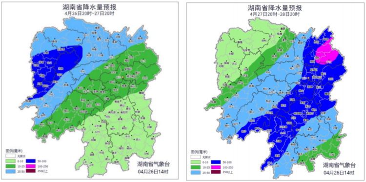 湖南省应急委办公室发布汛情提醒,4月26日晚起有一次较强降水过程,需加强防范应对。