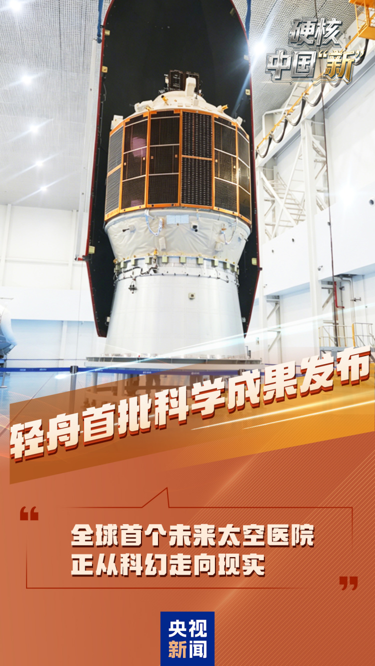 全球最大、重大跨越、首飞成功 本周,我国在核电、航空航天、船舶等领域 接连解锁新成就 轻舟发布首批科学成果 全球首个未来太空医院从科幻走向现实 4月15日,我国自主研制的轻舟试验飞船正式发布