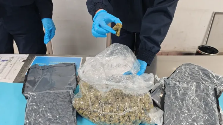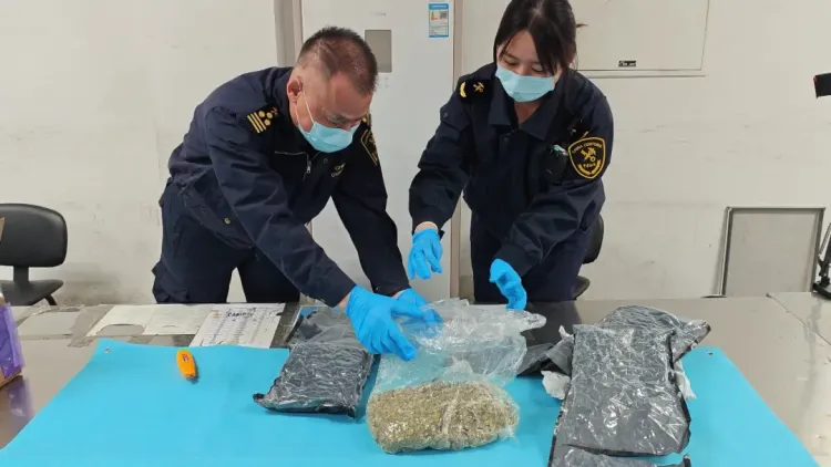 近日,广州海关在广州白云机场口岸查获毒品大麻,重881.21克。