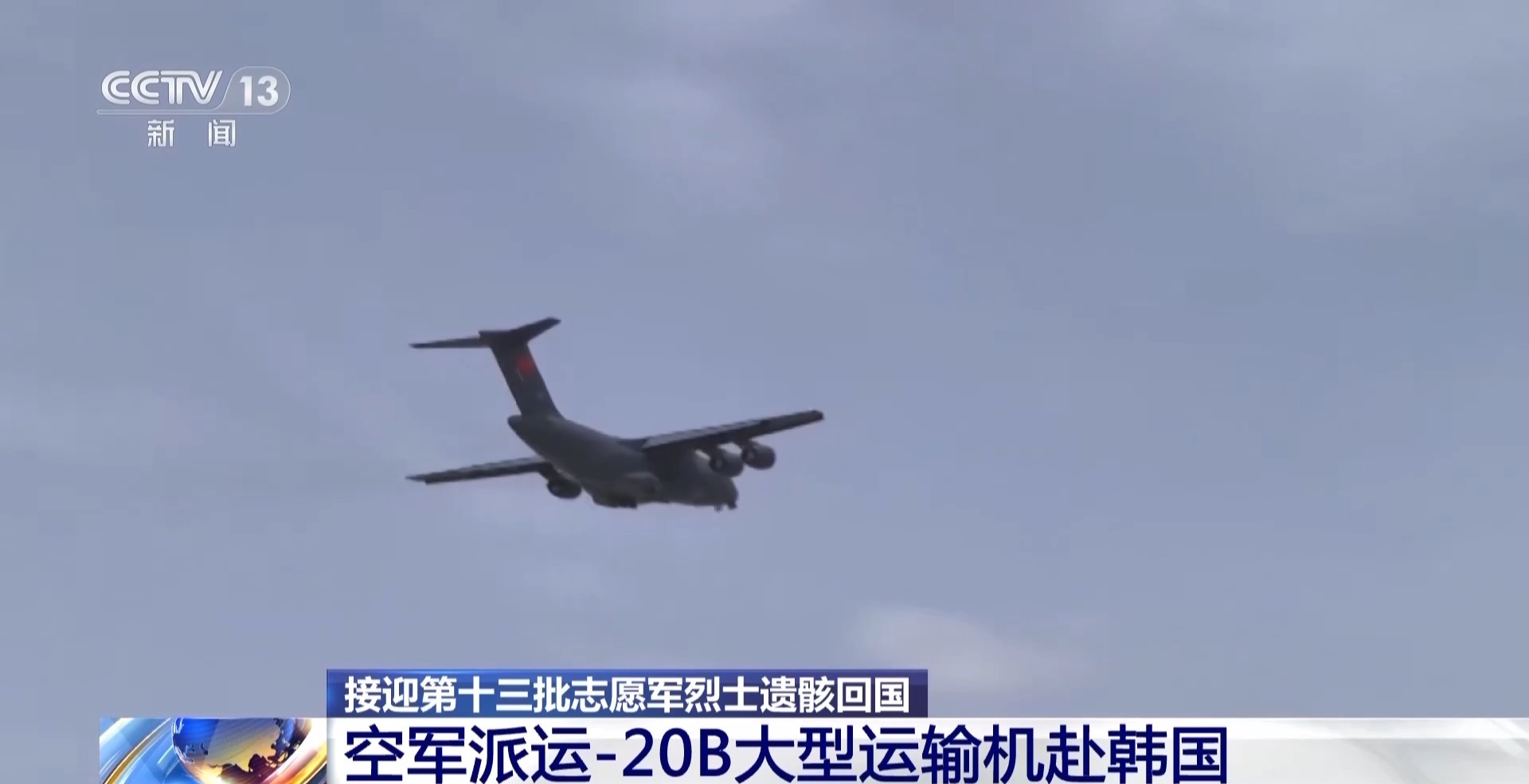 2015年以来,空军每年都派出飞机赴韩执行接迎任务。2020年开始,空军派出国产大型运输机运-20执飞此项任务,今年是运-20B首次执行接迎任务。空军同步发布了接迎第十三批志愿军烈士遗骸回国任务标识,该标识由志愿军战士雕塑、中国人民志愿军胸章、运-20B与4架歼-20编队、新时代官兵、和平鸽等图案组成,配有“英雄1950”、“回家2026”字样,两枚任务章一体设计,寓意着英雄回家血脉传承,寄托着空军官兵铭记历史、缅怀先烈的真挚情感。