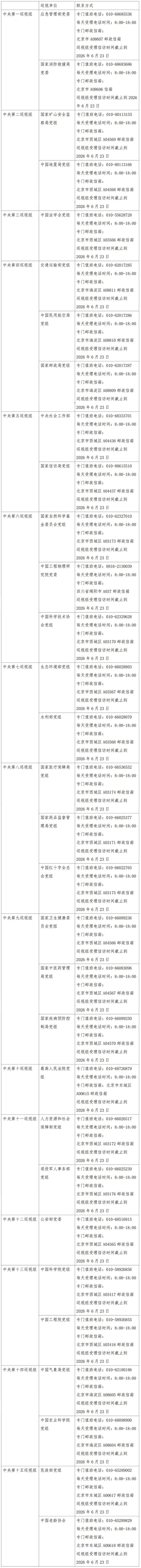 已进驻中央巡视组联络方式:
