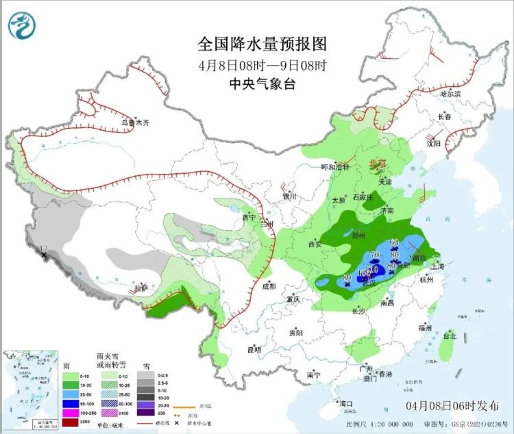 预计今天白天到夜间,湖北南部和东部、安徽中北部、河南东南部、江苏中北部等地部分地区有大到暴雨,其中,湖北东部局地有大暴雨(100至150毫米)。上述部分地区将有小时雨量大于20毫米的短时强降水天气,其中,湖北东部局地小时雨量大于50毫米。
