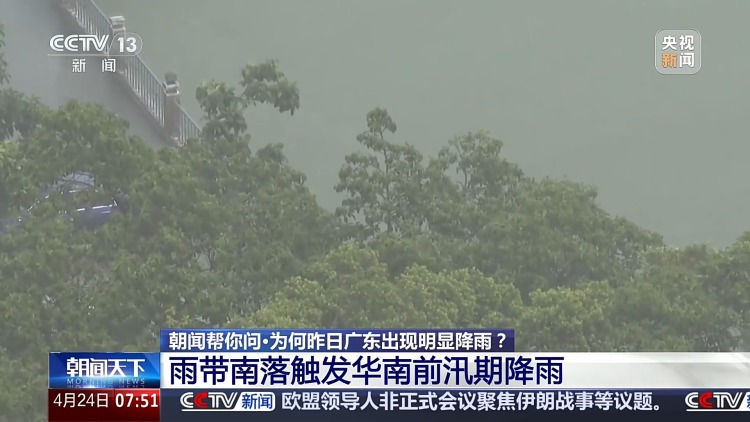第二点,虽然我们还没有进入到“龙舟水”的核心时段,但是在珠三角等地近期气温高,大气能量足,水汽也相对充沛,所以当有冷空气到来的时候,就容易出现像雷雨大风、短时强降雨等强对流天气。今天(24日),切变线还会进一步地南压,华南沿海等地还会有强降雨和强对流天气。特别需要提示的是广东珠江口以西以及海南岛北部等地可能还会有大暴雨。24日夜间开始,这轮华南的强降雨将基本收尾。