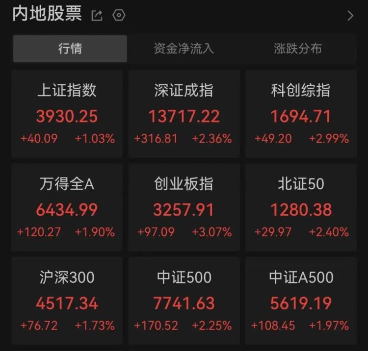 A股三大指数集体高开