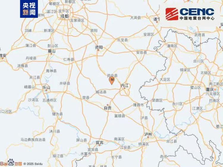 四川内江市资中县发生3.9级地震 震源深度5千米