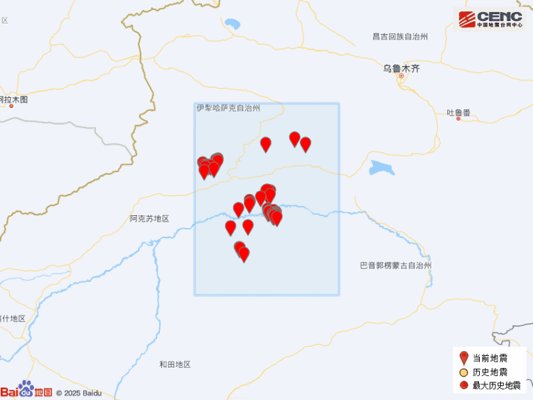 历史地震: 根据中国地震台网速报目录,震中周边200公里内近5年来发生3级以上地震共569次,最大地震是2023年1月30日在新疆阿克苏地区沙雅县发生的6.1级地震(距离本次震中198公里),按震级大小前50次历史地震分布如图。