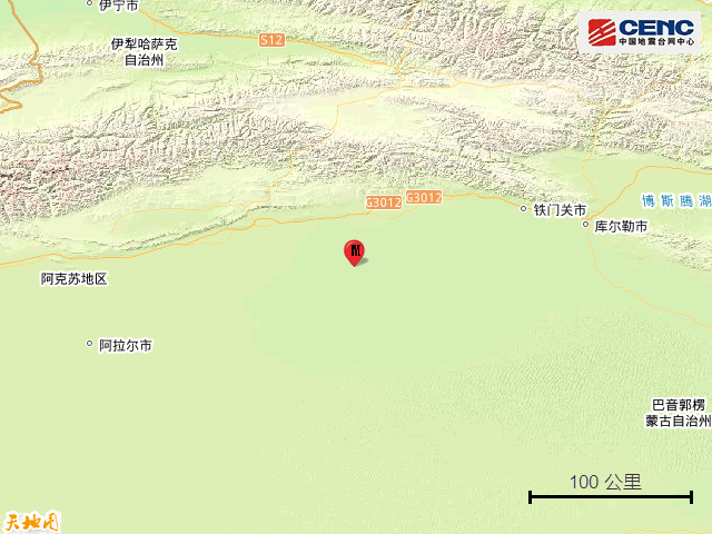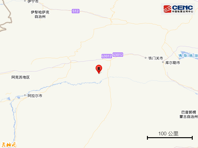 速报参数: 据中国地震台网正式测定,4月19日7时48分在新疆阿克苏地区库车市发生3.0级地震,震源深度18公里,震中位于北纬41.30度,东经83.91度。