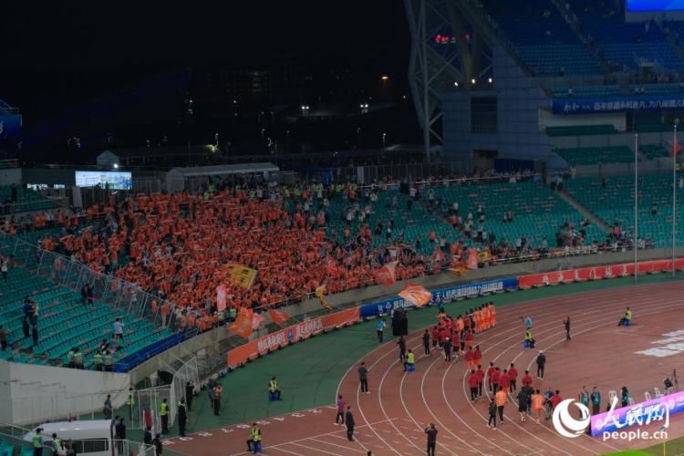 比赛已经结束,许多球迷迟迟不舍离场。人民网 欧阳奕奕摄