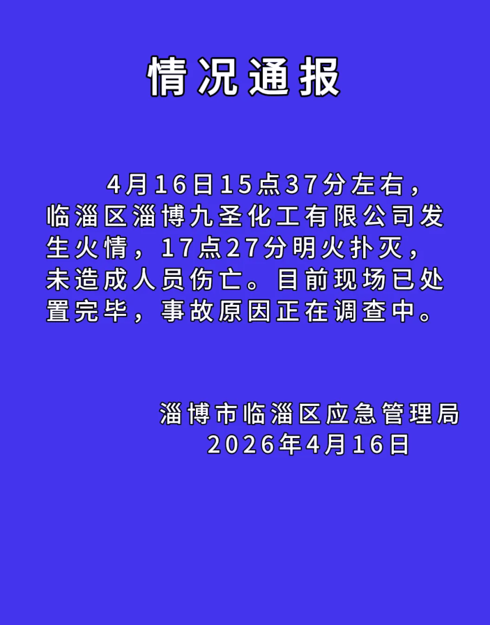 4月16日,山东淄博市临淄区应急管理局发布情况通报: